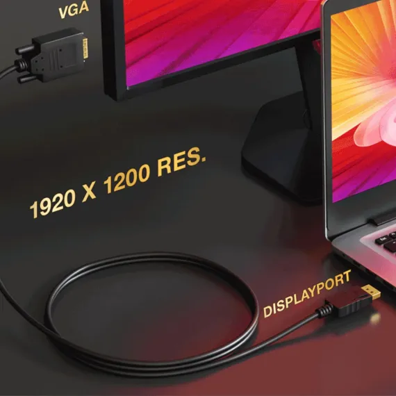 Connect your DisplayPort-enabled device to a VGA display with our high-quality DisplayPort to VGA adapter cable. This cable is designed to deliver sharp, clear visuals and reliable performance. Upgrade your display setup today with this premium DisplayPort to VGA adapter cable