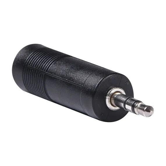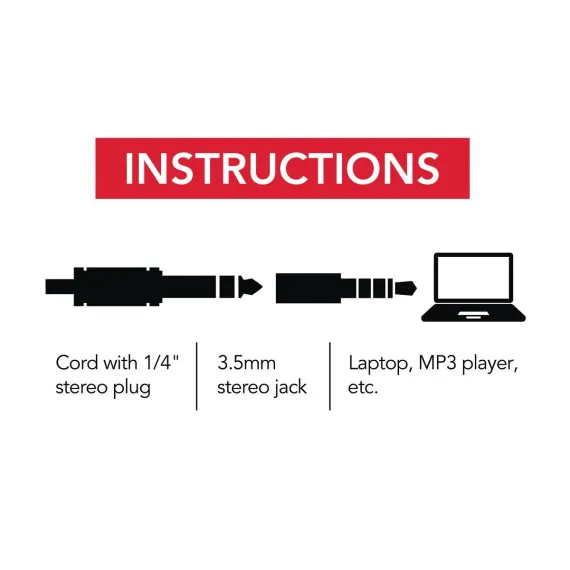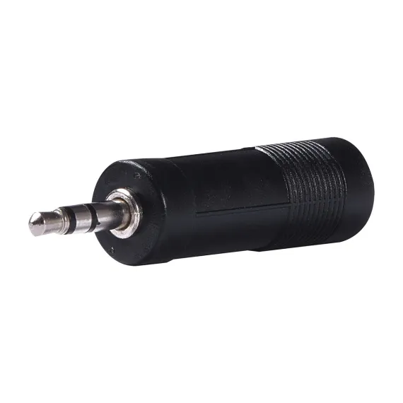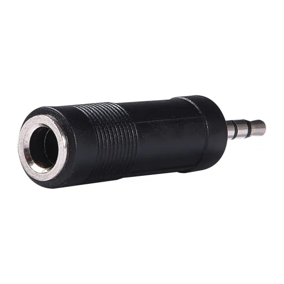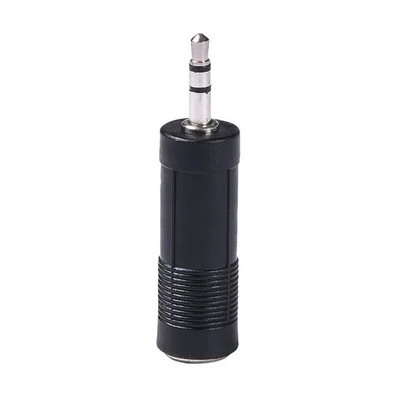 This RCA Adapter converts a 1/4-in. stereo plug to a 3.5-mm (also called a mini or 1/8 in.) stereo jack. So, if your headphones or other device has a 1/4-in. stereo plug, this adapter will convert it to a 3.5-mm mini plug. It is ideal for portable devices and headphones. The corrosion-resistant connectors provide a reliable and precise connection._
