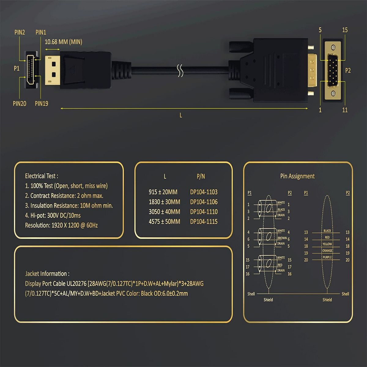 This high-performance cable allows you to seamlessly connect a DisplayPort-equipped laptop or desktop to an older HD15 monitor, perfect for extending your display options or reviving a cherished VGA monitor.