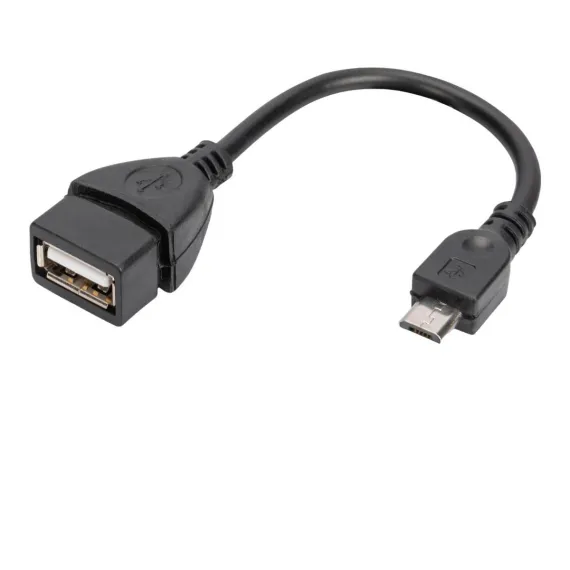SANOXY Turn your smartphone or tablet into a USB host with this Micro USB to USB OTG Adapter cable. This cable allows you to connect USB accessories such as flash drives, keyboards, mouse and media readers to your device. With this adapter cable, you can get the most out of your smartphone with user-friendly removable data storage or Share multimedia files easily. Micro USB male (Micro USB B 5-Pin Male) connector to USB female (USB 2.0 a Female) connector. The cable is 5.5 inches long. The micro USB to USB on-the-go adapter cable