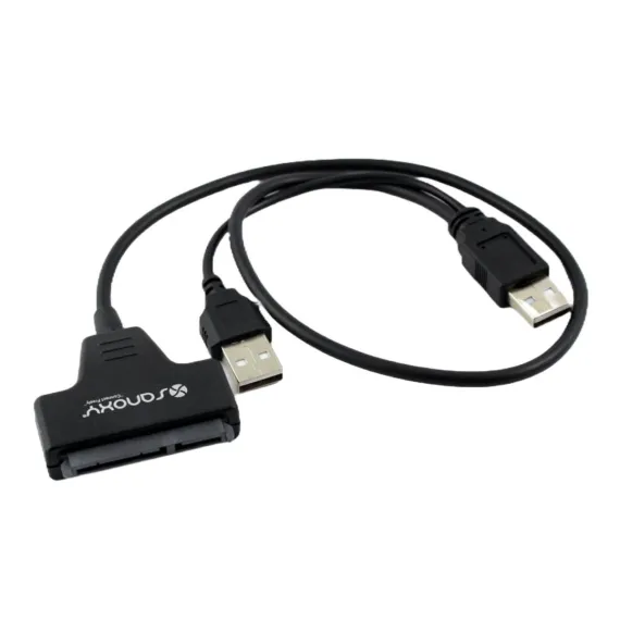 Enhance your data transfer experience with the Sanoxy USB 2.0 to 2.5inch HDD 7+15pin SATA Hard Drive Cable Adapter. This versatile adapter effortlessly connects your 2.5-inch SATA hard drive or solid-state drive (SSD) to your computer via a USB port, enabling seamless data transfer and testing. Featuring two USB 2.0 Type-A male connectors and one 7+15pin SATA female connector, this adapter provides maximum compatibility and flexibility. The Y-type design ensures ample power supply, even for high-performance SATA HDDs up to 7200rpm. Experience plug-and-play convenience with no additional drivers required, ensuring a hassle-free setup. Connect and Transfer Data Effortlessly: Easily connect your 2.5-inch SATA hard drives or SSDs to your computer for seamless data transfer and testing. Dual USB Power Support: The Y-type design provides additional power when needed, supporting high-performance SATA HDDs up to 7200rpm. Universal Compatibility: Connect your 2.5-inch SATA hard drives or SSDs to any computer with a USB port.