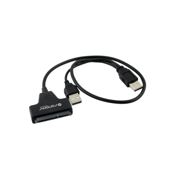 Sanoxy USB 2.0 to SATA 7+15 Pin 22 Pin Adapter Cable for 2.5 inch SATA Hard Drives Features :Connects 2.5_ 7+15pin SATA HDD/SSD to computer via USB port for easy test and data transfer. Two USB 2.0 type-A male (Y-type) and one 7+15pin SATA female connectors available. USB Y cable supports up to 7200rpm SATA HDD or more, When lack of power, please plug the additional USB connector to the computer. Support USB 2.0 high-speed 480Mbps and USB 1.1 full-speed 12Mbps. Compliant with Serial ATA specification revision 2.0 & 1.0. USB bus power mode. No external power requiredSupports Plug & Play and Hot-swamping. Compliant with USB 2.0 specification. No driver required for any OS. Only for 2.5_ SATA and SSD HDD. Reclaim your valuable data and transform your old 2.5-inch SATA hard drives into convenient external storage solutions with the Sanoxy USB 2.0 to SATA Hard Drive Adapter Cable. This versatile cable seamlessly connects your SATA HDD or SSD to your computer's USB port, enabling easy data transfer, testing, and backup without the hassle of installing internal drives.