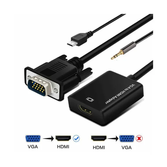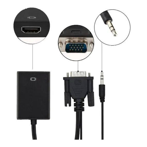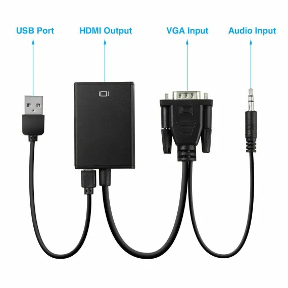 This VGA to HDMI converter allows you to connect your VGA device to an HDMI display with audio. It supports high definition resolutions up to 1080p and is plug and play, so no software or drivers are required. The adapter also comes with an audio cable, so you can enjoy your audio and video content on your HDMI display. Benefits: Connect your VGA device to an HDMI display with audio. Supports high definition resolutions up to 1080p. Plug and play, no software or drivers required. Comes with an audio cable