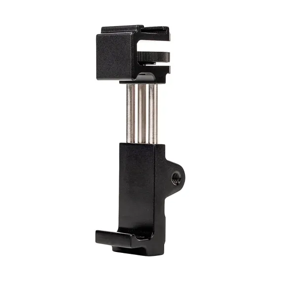 The Saramonic SR-BSP1C is a smartphone clamp designed for tripods, monopods, stands and stabilizing handgrips that enables to shoot more stabilized photos and video. It also lets attach essential accessories to phone like lights, microphones, wireless systems and more. The clamp can be confidently adjusted to fit smartphones up to 3.6" wide with a case and it can be mounted to shoot cinematic horizontal landscape video, or vertical video for Facebook, SnapChat, Instagram and more.Rugged and Well EquippedThe SR-BSP1C features an all-aluminum construction for ultimate reliability and durability, yet it’s still impressively lightweight. It features three metal 1/4" 20 tripod threads, so rig can easily be mounted to a tripod, monopod, handgrip or elsewhere, and be used to mount additional accessories. A cold shoe mount is provided on the clamp to attach microphones, wireless receivers, LED lights and other vital accessories.Stability and VersatilityDon’t let poor stability ruin the quality of smartphone videos and photos. Shoot more stable and smoother video and photos with the SR-BSP1C, achieve more visually appealing angles and improve the light and sound quality by attaching the accessories need. This is an essential item for making smartphone photos and videos look like professionally produced content.