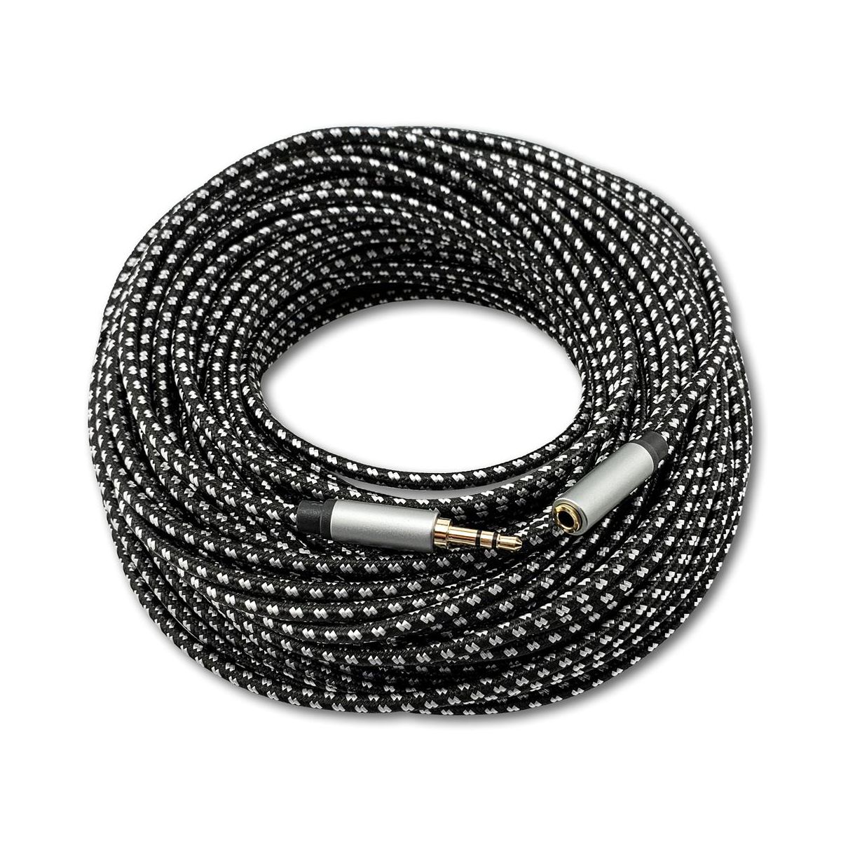 SatelliteSale Auxiliary 3.5mm Audio Jack Male to Female Digital Stereo Aux Extension Cable Universal Wire Black/White Nylon Cord 10 feet