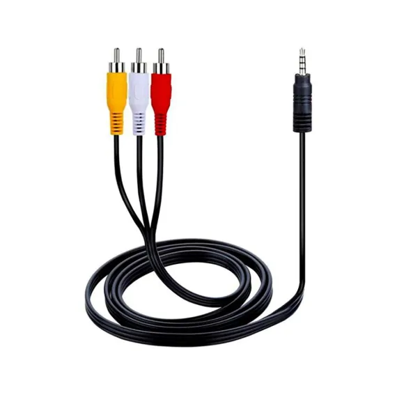 SatelliteSale 3.5mm Jack Plug Male to 3-Male RCA Audio Stereo Composite Universal Wire Cable (6 feet) connects your audio devices with its right and left plugs( white and red colors), transmitting clear audio. The central pin ( yellow color ) is used for composite video data. Our RCA cord is a perfect match for both residential and commercial use. Every cable we sell is an excellent cost-effective option. Our audio and video RCA composite cord is covered with a durable PVC jacket to protect it from unwanted bending damage and to increase its durability. Moreover, gold-plated connectors will resist oxidation and serve much longer. Enjoy the clarity of the sound and picture without any distortion and signal loss, even at extended lengths. Our Composite 6 feet Cable is compatible with a wide range of modern and previous versions of audio/video devices, such as DVD players, TVs, Wii boxes, VCRs, home theatre systems, gaming consoles, soundbars, speakers, subwoofers, Blu-Ray players, and AV receivers. Works like a charm with 3.5mm socket enabled video and photo cameras transmitting video to your TVs, screens, and monitors. Moreover, we assure the lifetime service of each cable to deliver a positive experience to our clients.