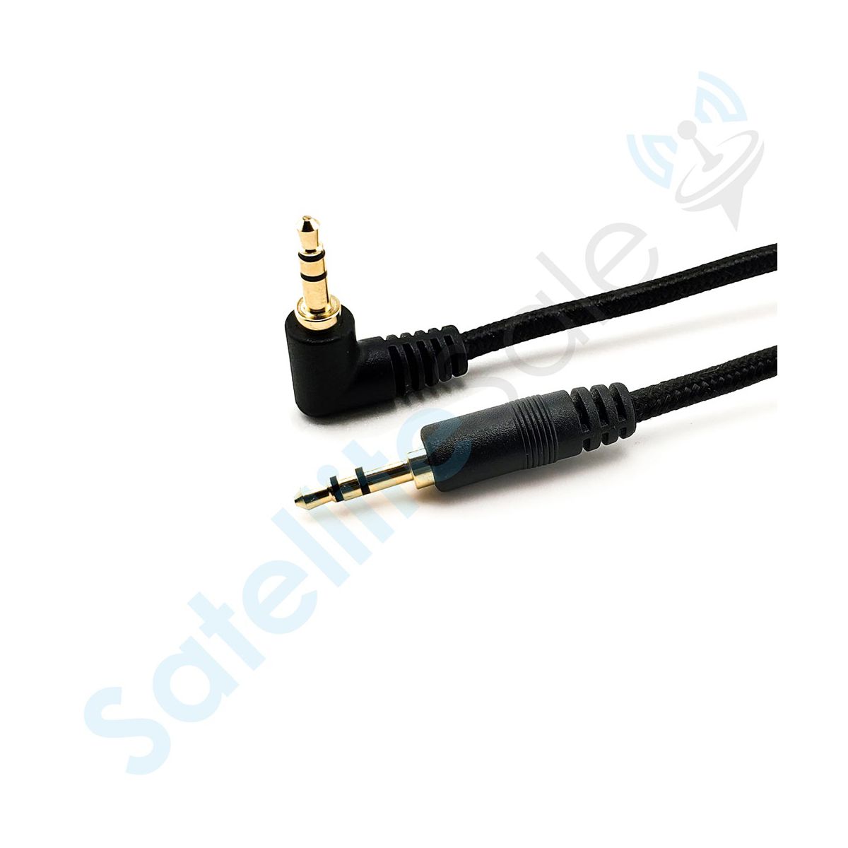 SatelliteSale Auxiliary 3.5mm Right Angle Audio Jack Male to Male Digital Stereo Aux Cable Universal Wire Black Nylon Cord 6 feet