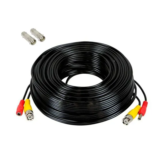 SatelliteSale CCTV Security Camera bnc cables Camera BNC camera cord Siamese Pre-Made 2-in-1 Video and Power Universal Wire PVC Black Cord simplify the installation of the surveillance system by using one bnc security cable to transmit High Definition video and provide safe power supply. It is pre-made so that you don’t have to worry about cutting and crimping the ends of your own cables before installing them. It makes the installation easier than ever. Enjoy high-definition video transfer both in commercial and residential setups. We offer different cctv cable sizes, starting with 20 feet long and reaching up to 100 feet long cctv cable. Designed specially to support the latest equipment with a high-speed connection. It is a cost-effective solution for both residential and commercial setups, making wiring for the security camera system a breeze of cold air. The cable para cámara de seguridad is composed of a copper core, which is highly conductive and durable. This cctv wire is waterproof and can be used indoors and outdoors. It transmits video signals and provides DC power for the surveillance camera system. Our CCTV bnc video cable is compatible with all brand surveillance DVR camera systems, HDCVI, HDTVI Cameras, Analog, DVR AHD/CVI/TVI. We assure the lifetime service of each cameras cables to deliver a positive experience to our clients.