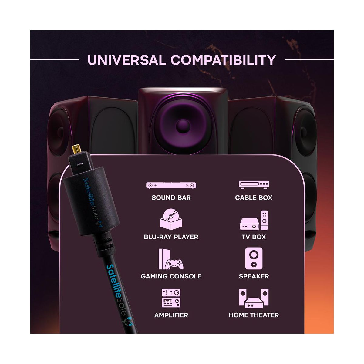 SatelliteSale Digital Toslink SPDIF Audio Optical Fiber Cable Universal Wire PVC Black Cord connects your audio devices, transmitting crystal clear digital audio data. Our optical fiber cord is a perfect match for both residential and commercial use as we offer different toslink cable sizes, starting with 1.5 feet long and reaching up to 100 feet long. Regardless of the size, the selected toslink optical cable will be a perfect cost-effective option. Every SPDIF audio toslink optical fiber cord we sell is covered with a durable PVC jacket to protect it from unwanted bending damage and increase its durability. Moreover, gold-plated connectors will resist oxidation and serve much longer. Enjoy the clarity of the sound without any distortion, even at high volume levels! Our Digital Toslink SPDIF Audio toslink optical fiber Cable is compatible with a wide range of modern audio devices, such as home theatre systems, DTS Surround, and Dolby Digital Systems, gaming consoles(Xbox, PS4, PS5), soundbars, TVs, speakers, subwoofers, Blu-Ray players, and AV receivers. Perfect for uncompressed PCM, audio compressed 5.1 to 7.1 surround sound systems. Works like a charm on standard or Hi-Fi equipment with a Toslink SPDIF toslink Optical socket. We assure the lifetime service of each SatelliteSale Digital Toslink SPDIF Audio toslink optical fiber Cable, PVC Black Cord to deliver a positive experience to our clients. Please, remember to remove the plastic pin protectors before using the toslink optical audio digital cable!