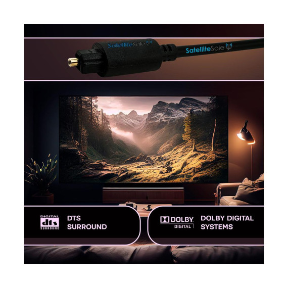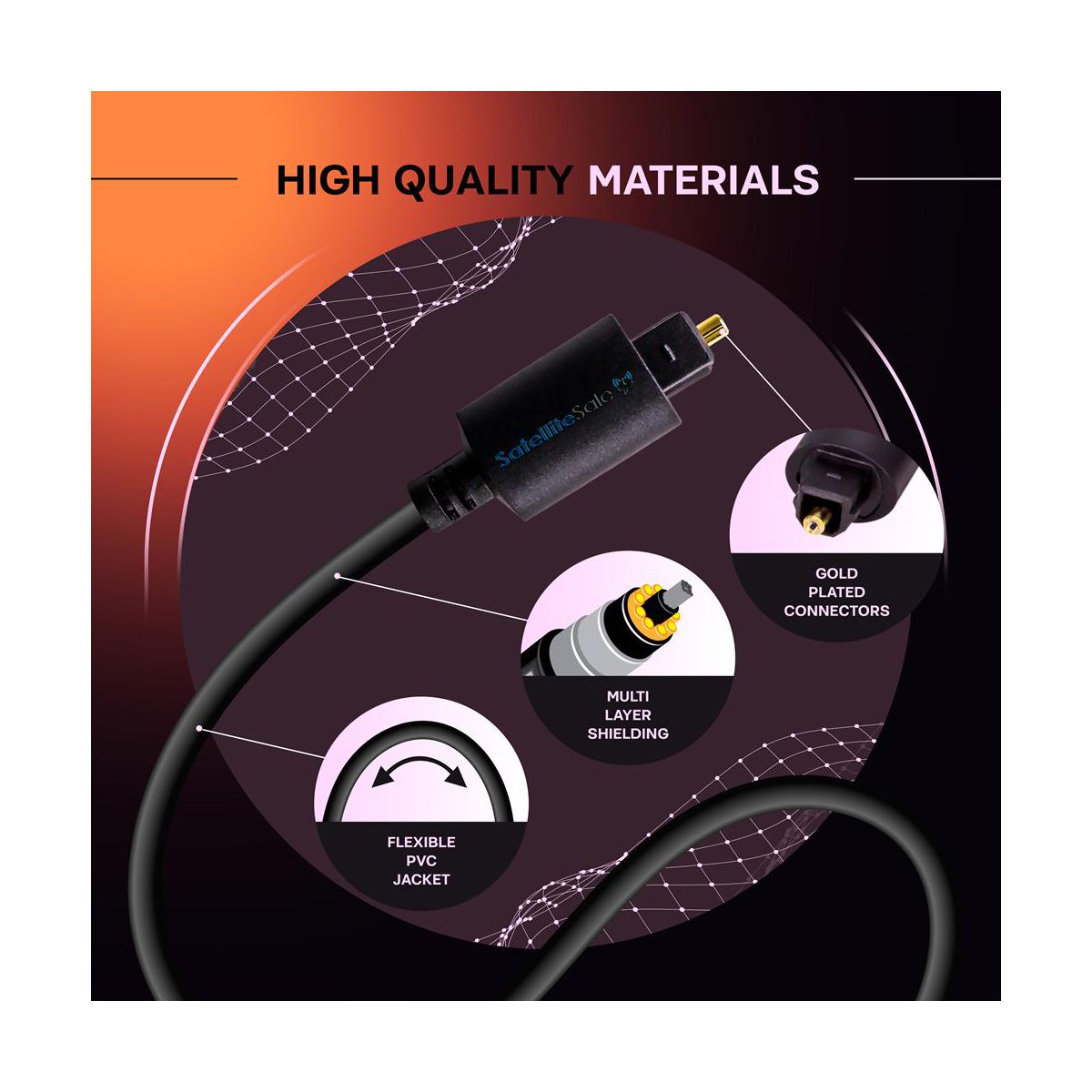 SatelliteSale Digital Toslink SPDIF Audio Optical Fiber Cable Universal Wire PVC Black Cord connects your audio devices, transmitting crystal clear digital audio data. Our optical fiber cord is a perfect match for both residential and commercial use as we offer different toslink cable sizes, starting with 1.5 feet long and reaching up to 100 feet long. Regardless of the size, the selected toslink optical cable will be a perfect cost-effective option. Every SPDIF audio toslink optical fiber cord we sell is covered with a durable PVC jacket to protect it from unwanted bending damage and increase its durability. Moreover, gold-plated connectors will resist oxidation and serve much longer. Enjoy the clarity of the sound without any distortion, even at high volume levels! Our Digital Toslink SPDIF Audio toslink optical fiber Cable is compatible with a wide range of modern audio devices, such as home theatre systems, DTS Surround, and Dolby Digital Systems, gaming consoles(Xbox, PS4, PS5), soundbars, TVs, speakers, subwoofers, Blu-Ray players, and AV receivers. Perfect for uncompressed PCM, audio compressed 5.1 to 7.1 surround sound systems. Works like a charm on standard or Hi-Fi equipment with a Toslink SPDIF toslink Optical socket. We assure the lifetime service of each SatelliteSale Digital Toslink SPDIF Audio toslink optical fiber Cable, PVC Black Cord to deliver a positive experience to our clients. Please, remember to remove the plastic pin protectors before using the toslink optical audio digital cable!
