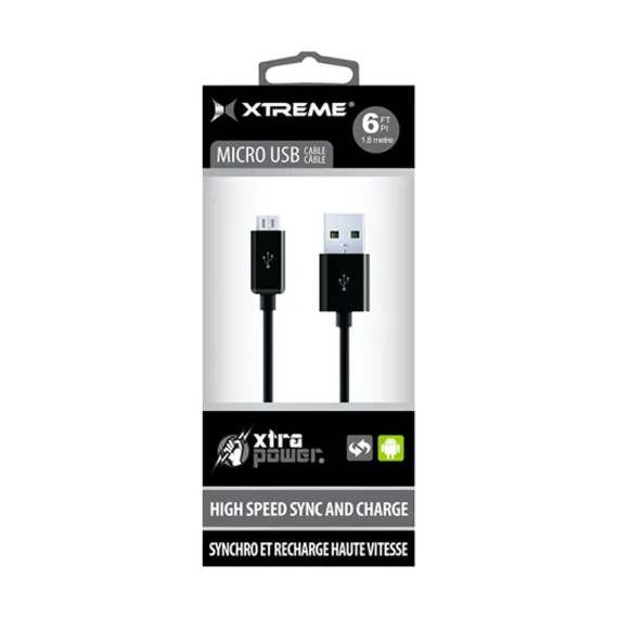The Xtreme USB to Micro USB Cable is lightweight and durable. This cable is 6 feet long and can sync and charge compatible devices.