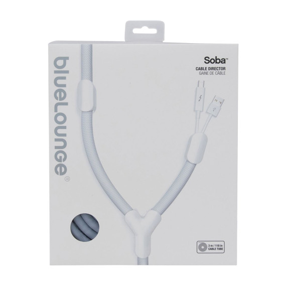 Wave goodbye to that mangled mess of wires running from the back of your computer or behind your TV. Soba® from Bluelounge® bundles and directs up to 3 cables at once to tidy up and keep things organized. Vortex technology zips up your cables and auto-coils the White cable runner tube. Sticky bits help route the bundled cable where you need it such as under desks, along a wall, or behind a piece of furniture.