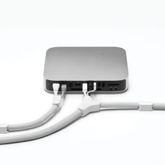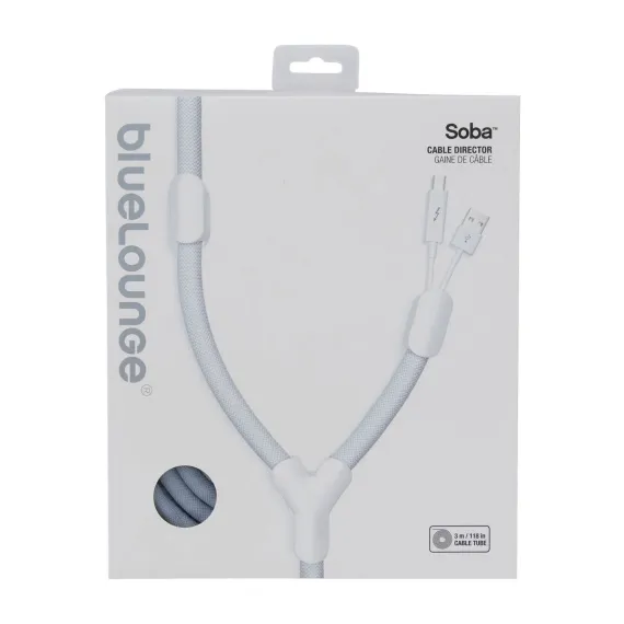 Wave goodbye to that mangled mess of wires running from the back of your computer or behind your TV. Soba® from Bluelounge® bundles and directs up to 3 cables at once to tidy up and keep things organized. Vortex technology zips up your cables and auto-coils the White cable runner tube. Sticky bits help route the bundled cable where you need it such as under desks, along a wall, or behind a piece of furniture.