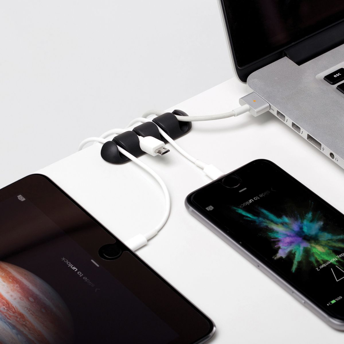 CableDrop® Multi is the ultimate cable command center that keeps up to 4 cables anchored in place so they don’t slip out of reach. Simply peel and stick the CableDrop® Multi to your desk, nightstand, or any flat surface and run the cable through the grooves to prevent from slipping. CableDrop® Multi keeps your necessary cables neatly stowed, organized, and at your fingertips. It’s ideal for cables with a diameter up to 0.3149 in. to 0.3937 in. (8 mm to 10 mm) such as Thunderbolt™ and Apple® 30-pin connectors. This pack contains 2 CableDrop® Multis.