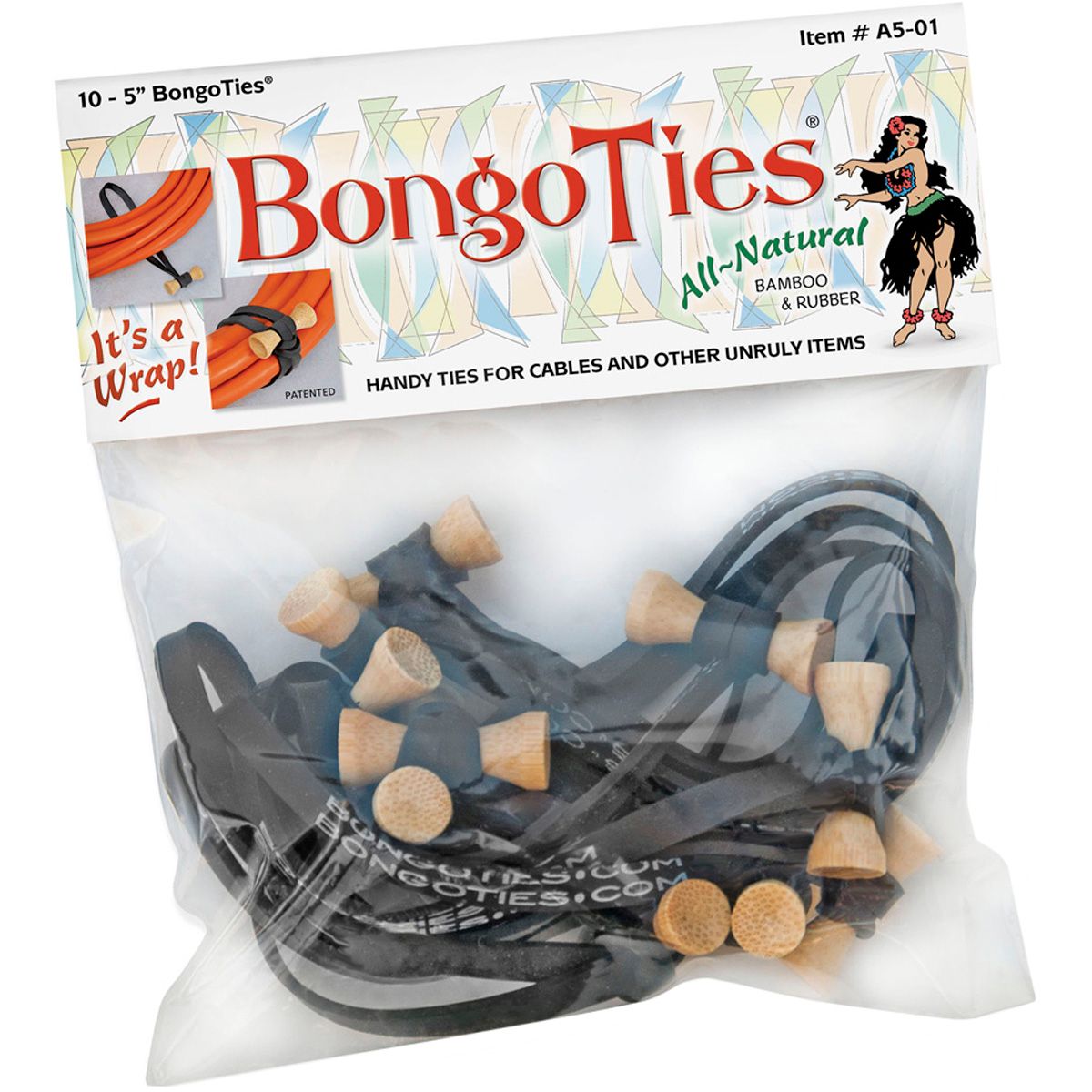 BongoTies All-Natural Reusable Cable Tie Wraps are professional quality, all-purpose tie wraps made from bamboo and natural rubber. With hundreds of handy uses around the home, office, and workshop, you can easily organize computer and TV cables, appliance and power tool cords, chargers and adapters, holiday lighting, and more! Other possible uses include tying down tarps, putting up banners, clamping items while gluing, and securing stuff to backpacks, bikes, and luggage. Originally designed as a quick and sturdy cable tie for photographers, movie grips, and sound technicians, BongoTies have become a trusted staple item in Hollywood as well as countless professional studios worldwide. Features: 10 BongoTies per pack. Reusable; Easy to apply and remove. Patented button-type closure design. Flared ends to ensure a secure tie. Made from renewable materials.