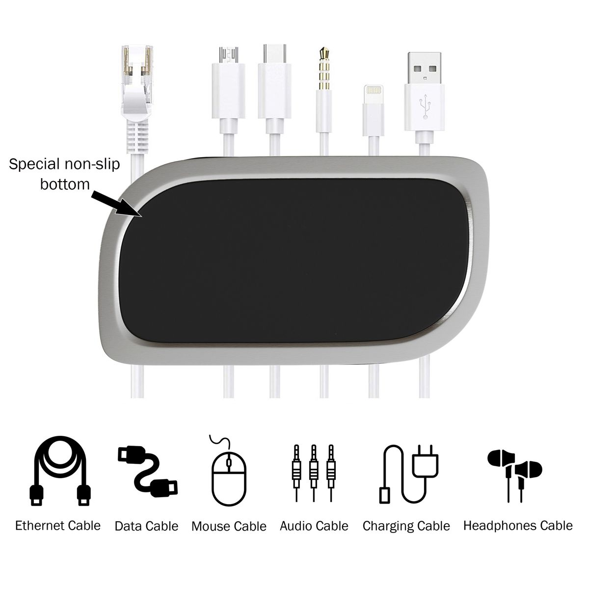 Declutter your cords and wires for improved home organization with this Cable Management Desk Organizer by Simple Cord. Designed to keep cables accessible, untangled, and ready for use in your home or office, this cord hider with protective storage cover features seven slots for a versatile way to secure wires of different sizes and a nonslip base that keeps the cable management box stable on your desktop. Use this cord cover in numerous ways, including as desk organization for printer cables and computer power cords or as a nightstand wire organizer to hold phone chargers and USB cables.