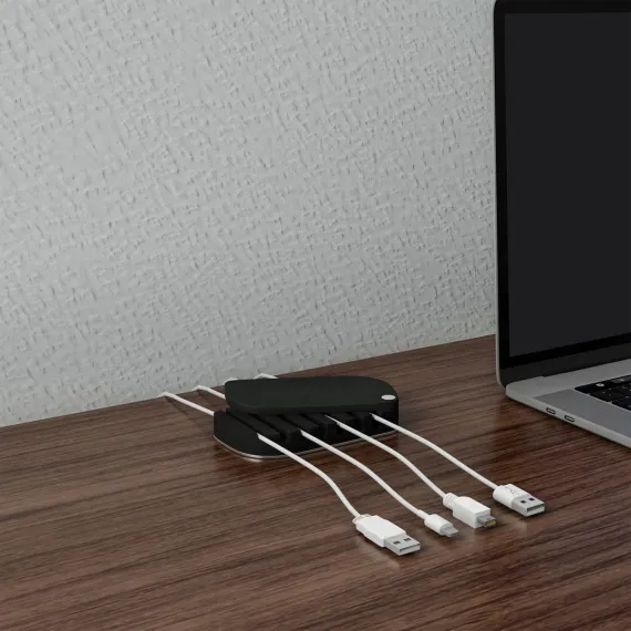 Declutter your cords and wires for improved home organization with this Cable Management Desk Organizer by Simple Cord. Designed to keep cables accessible, untangled, and ready for use in your home or office, this cord hider with protective storage cover features seven slots for a versatile way to secure wires of different sizes and a nonslip base that keeps the cable management box stable on your desktop. Use this cord cover in numerous ways, including as desk organization for printer cables and computer power cords or as a nightstand wire organizer to hold phone chargers and USB cables.