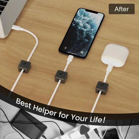 ChicFurnit offers an easy and stylish solution for organizing your cables. The magnetic design securely holds your cords in place, while the premium adhesive ensures a firm grip on various surfaces like wood and glass without leaving residue. Perfect for all types of cables, including USB and Type-C, it’s a versatile tool for any home or office. Installation is simple—just peel, stick, and press for a secure hold. This 6-pack organizer will keep your space neat, making it easy to access your cables whenever you need them.