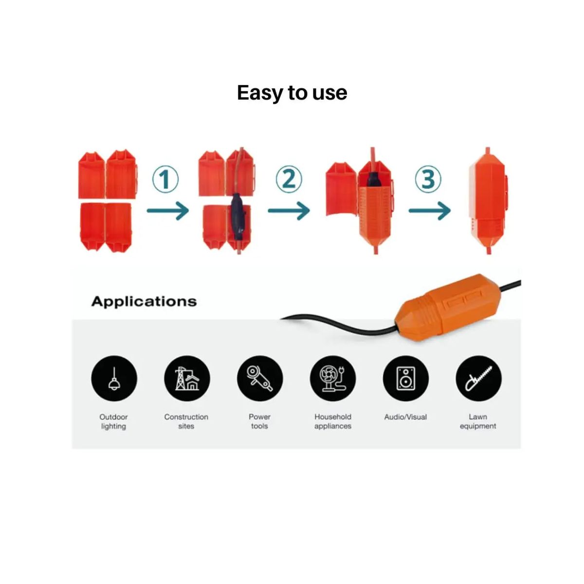 Keep your home and family safe with the CordSafe Extension Plug Cord Protector, a durable and weather-resistant snap-over cover designed to secure your extension cord connections. From outdoor holiday lighting to garden tools, CordSafe is your trusted partner for reliable and secure power. It retains your plug connections and provides weather-resistant protection.