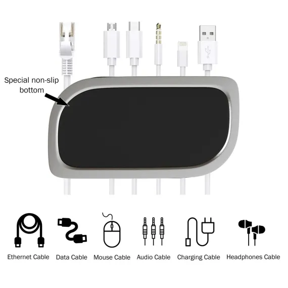 Desktop Cable Organizer- Cord Management for 7 Wires- Non-Slip Base - Holds Computer, Charging, Power Cords by Fleming Supply
