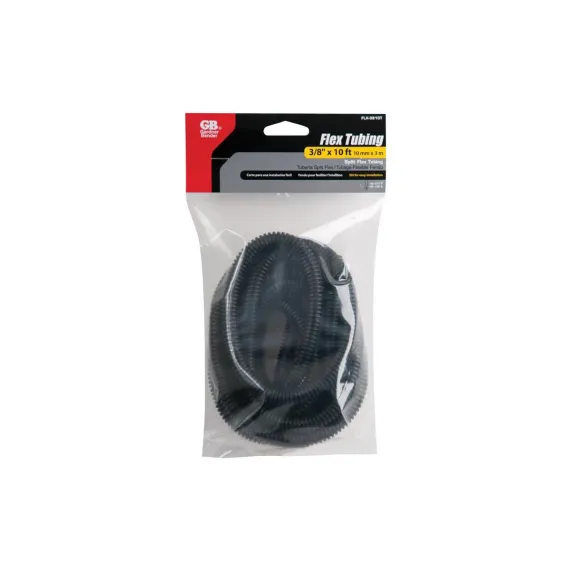 The Gardner Bender 120 in. L Black Flex Tube is made from polypropylene that protects electrical hoses, wires, and cables from cuts, abrasions, and UV damage. This Gardner Bender has 3/8 inch x 10 feet and Flexible Tubing. This tubing is split down the middle to accommodate wire breakout. Make cable management easy with the Gardner Bender.