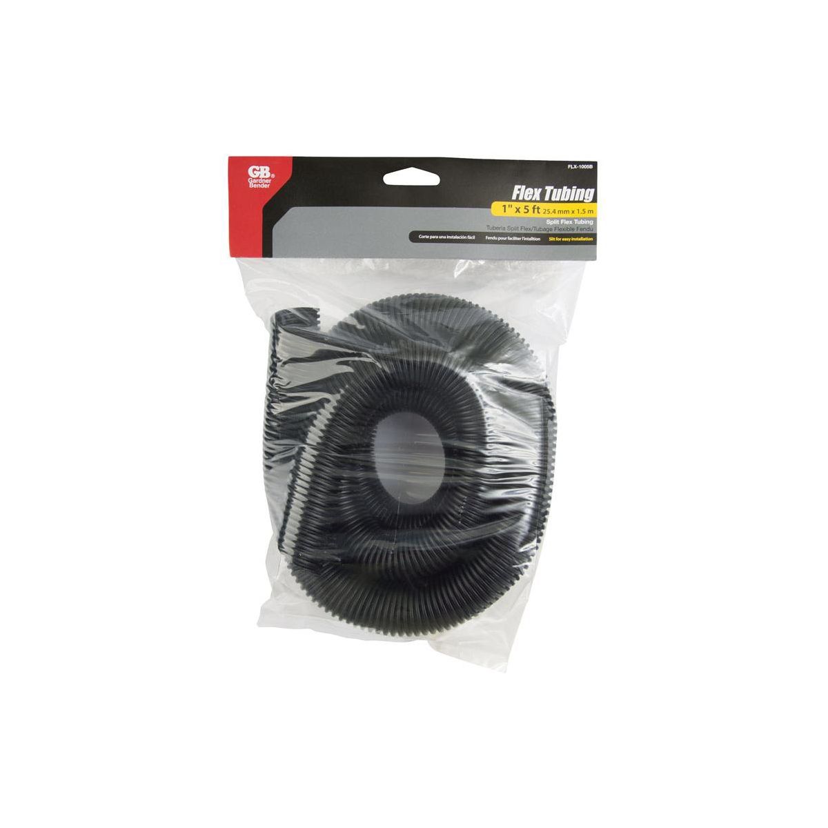 A Gardner Bender 60 in. L Black Polyethylene Flex Tube organizes and protects electrical hoses, wires, and cables from cuts, abrasions, and UV damage with Gardner Bender's black 1" flexible tubing. The edges of this flexible tubing are corrugated for maximum flexibility. Split down the middle, the tubing allows for easy wiring breakout.