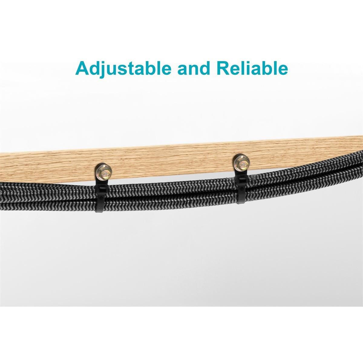 Mountable head cable ties combine two great products into one. Zip bundles of cables together and mount the ties to a wall using the integrated mounting eyelet on the zip tie head. No need for additional wall clips or mounts. Helps keep cables neat and organized. Prevents loose cables from wandering and causing accidents. Prolongs cable life by keeping them out of the path of traffic.