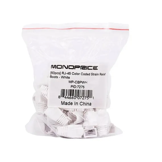 Monoprice Cat5e/Cat6 RJ45 Strain Relief Boots White, 50 Pack