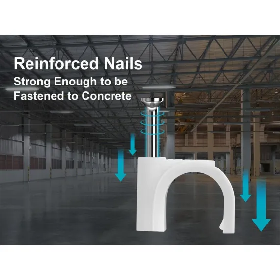 Circle cable clips allow you to secure runs of round cables like coax to walls and floorboards for a cleaner look and prevent tripping over loose cables. Easy installation. Just use a hammer to nail then to your mounting surface. Great for retrofitting cables to rooms where in-wall installations are not an option.