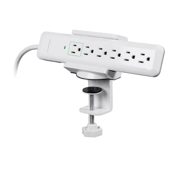 This desk clamp holder provides an easy way to organize your desk and keep power and data hubs and connections accessible. It clamps on to any desk edge and provides a way to attach surge protectors, power strips, and USB hubs for easy access. No more need for screws, zip ties, hook and loop fasteners, or double sided tape to mount power and data hubs. No more crawling under desks and reaching behind dusty PCs.