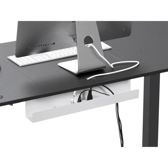 Made of steel for a durable platform, it can hold power strips, power adapters, and various cables to help keep wires in order. It is attached by screws under most wood or wood-composite desks.
