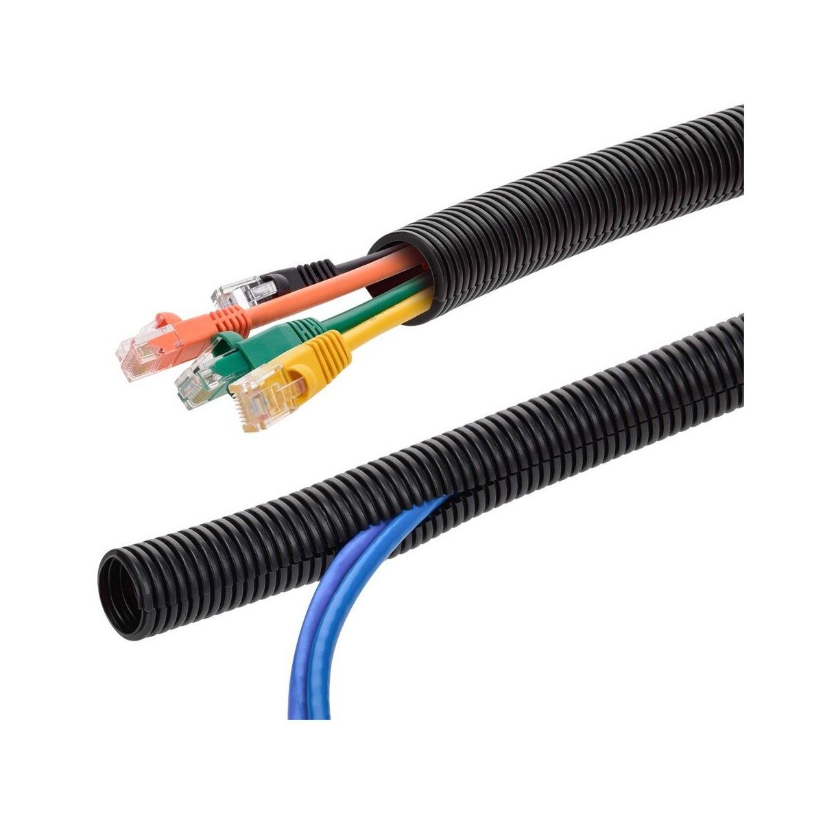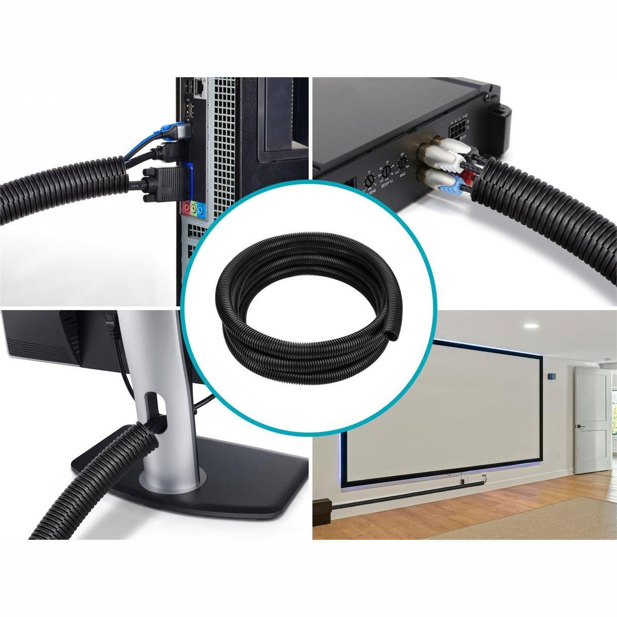 This plastic tubing is perfect for organizing and protecting your wiring. It also eliminates accidents that can be caused by loose cords. It prevents dust around cords and wires. Its ideal for home or office electrical equipment. And it also includes a numbering system that makes it easy to plug each cord into the right jack. It will help to provide a neat appearance for any entertainment system or office setting. It includes handy cord fasteners to help keep the cords from getting entangled. And any excess tubing can be easily cut away.
