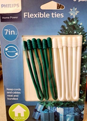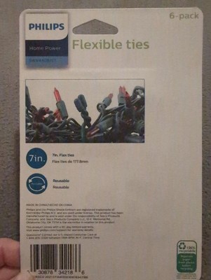 The flared ends provide an easy grip when bundling cables together, and they come in two colors for easier organization of cables. The set features three 7in. green flex ties and three 7in. white flex ties, making it easy to color code cords. The festive color scheme also blends in nicely with Christmas decorations, seasonal lighting and landscape designs. Philips Flex Ties are the perfect all-around accessory for any job.