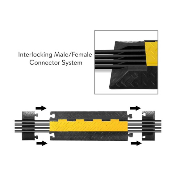 Complete your cable protection setup with the Pyle Cable Ramp End Caps Finish Pieces. Designed to fit the Pyle model PCBLCO106, these end caps provide a clean and professional finish to your cable ramp setup. Constructed from engineered thermoplastic rubber, these end caps are durable and waterproof, making them ideal for both indoor and outdoor applications. With a four-channel design and interlocking male/female connectors, they ensure your cables are securely covered and protected. Safe for pedestrian walking and lightweight vehicle traffic, they are perfect for home, office, or business use.