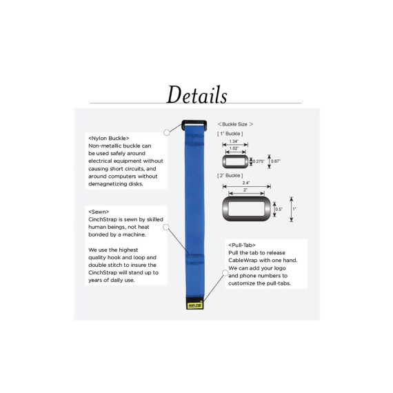 The Rip-Tie Cinchstrap is a reliable way to keep cables safely and tidily bundled. CinchStraps are sewn for durability. The CinchStrap can be attached to a single cable and then used to consolidate the rest of bundle. Ideal for residential or industrial use.