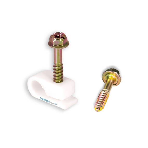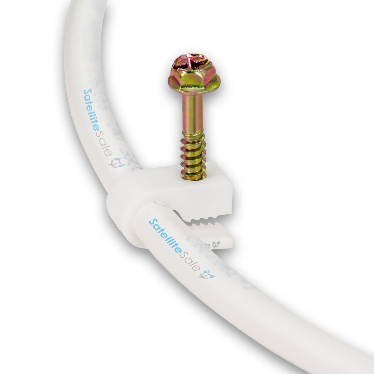 Keep your expensive coaxial, data, audio/video, and internet cables safe with our SatelliteSale Single Screw White Clips! Our cable clips are manufactured from advanced PE UV material that remains strong but soft even after several years of use. Its unique design features special ridges that 'secure' the cable firmly and automatically adapts to a wide range of cable sizes. So enjoy your movies, and video games, or surf the Internet without interference commonly noticed with staples or metal clips. Our clips always come with pre-installed corrosion-resistant zinc-plated screws that are made to be durable and simple to install. Secure your cables to wood, plaster, and other decorative elements easily with SatelliteSale Single Screw Clips! These clips can be installed with a 1/4” socket, # 2 Phillips, or flat blade screwdriver. Organize your electrical and ethernet cables, dish wires, USB cables, telephone lines, Ethernet cables, closed routes, computer power cables, and other 16-30 AWG cables. Every pack of clips we sell is a perfect match for both commercial and residential use. In addition, we assure the lifetime service of each cable clip pack to provide a positive experience to our clients!