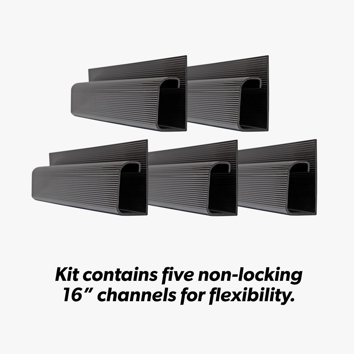 The Under Desk Cable Management Kit by Simple Cord is a 5-pack of wire covers that will help you keep cables neatly and safely concealed under your desk or in your office. Each 16-inch non-locking J channel can hold up to 8 cords and installs quickly with the included extra-strength self-adhesive tape, making cord management easy. Use each versatile cable organizer for appliances like stand mixers, coffee makers, and blenders to keep your kitchen countertops tidy, in your home office, or as a cable hider for your living room entertainment center.