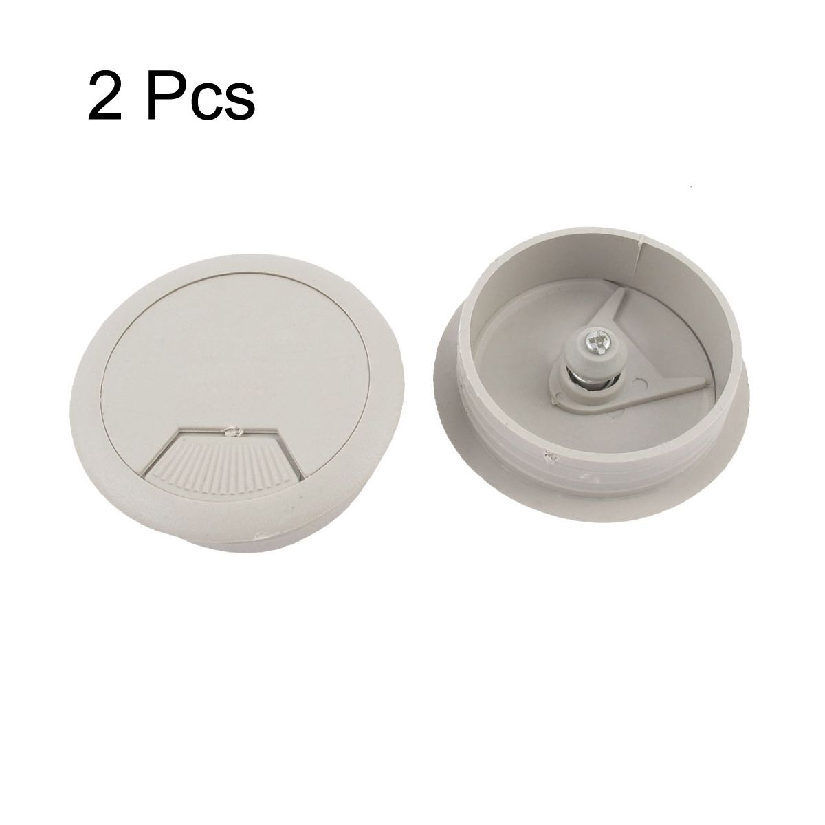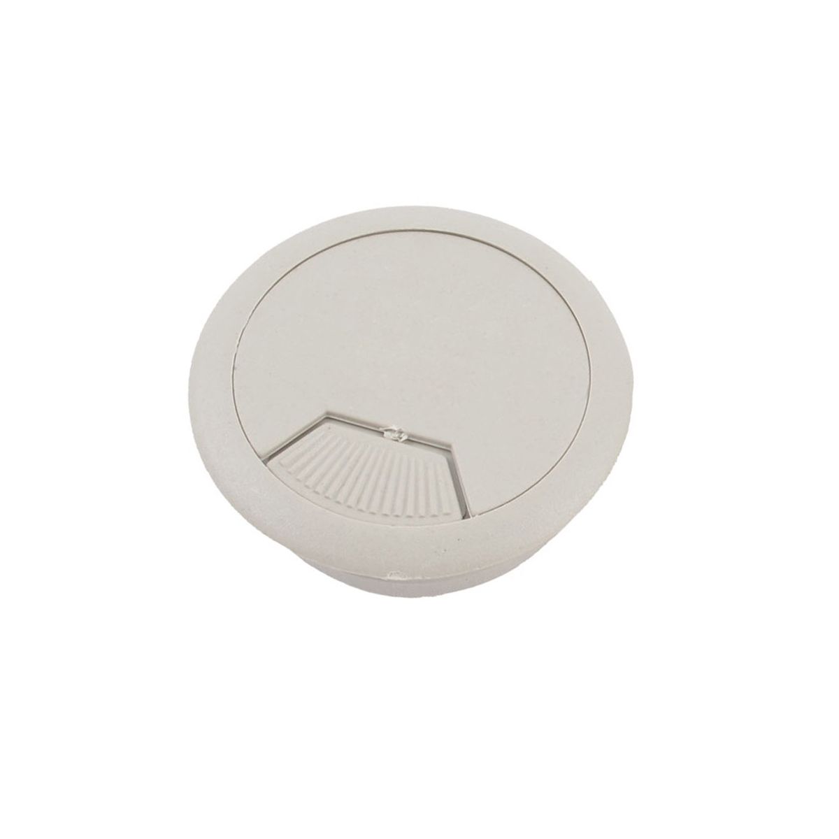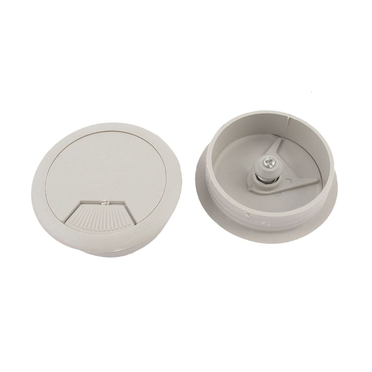 The round grommets fit a 5cm drilling hole and are made of plastic material. Designed with removable features, they are suitable for various sizes of computer cables. This ideal accessory allows you to install cables on your computer desk and is widely used in offices, homes, hotels, banks, and more. Includes two desk grommets in the package.