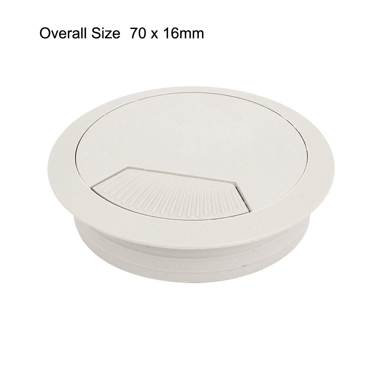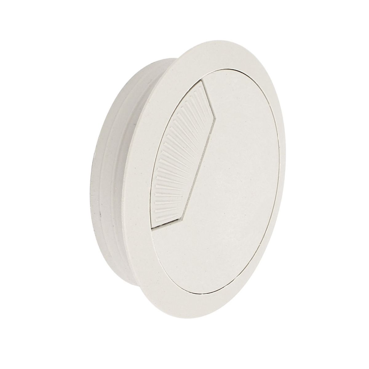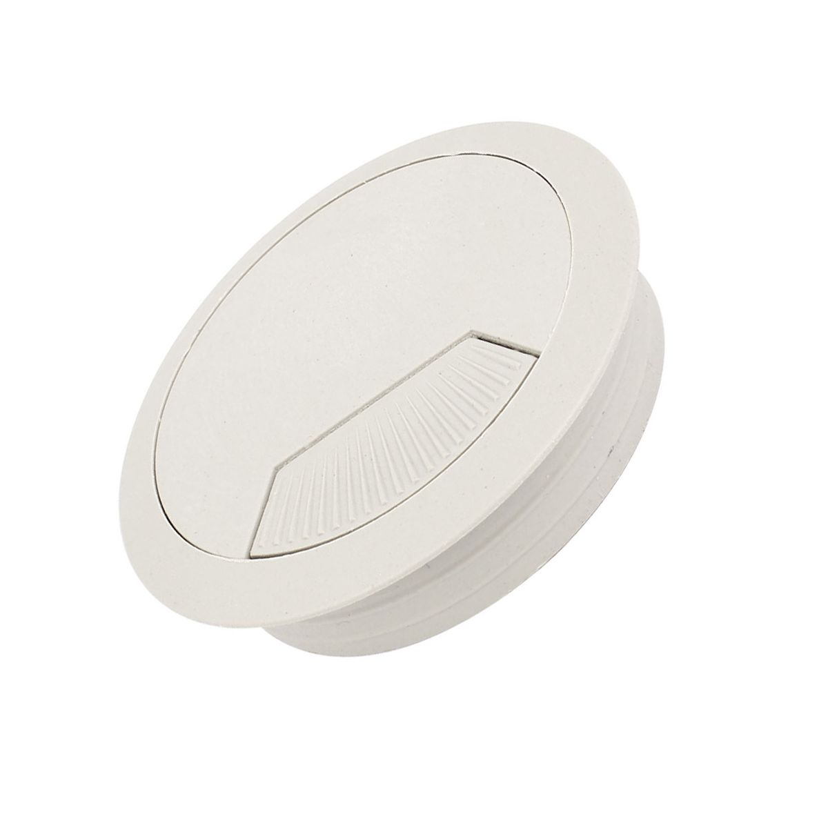 The round grommets fit a 60mm drilling hole and are made of plastic material. Designed with a removable feature, they are suitable for various sizes of computer cables. This ideal accessory allows you to install the cable on your computer desk and is widely used in offices, homes, hotels, banks, and more.
