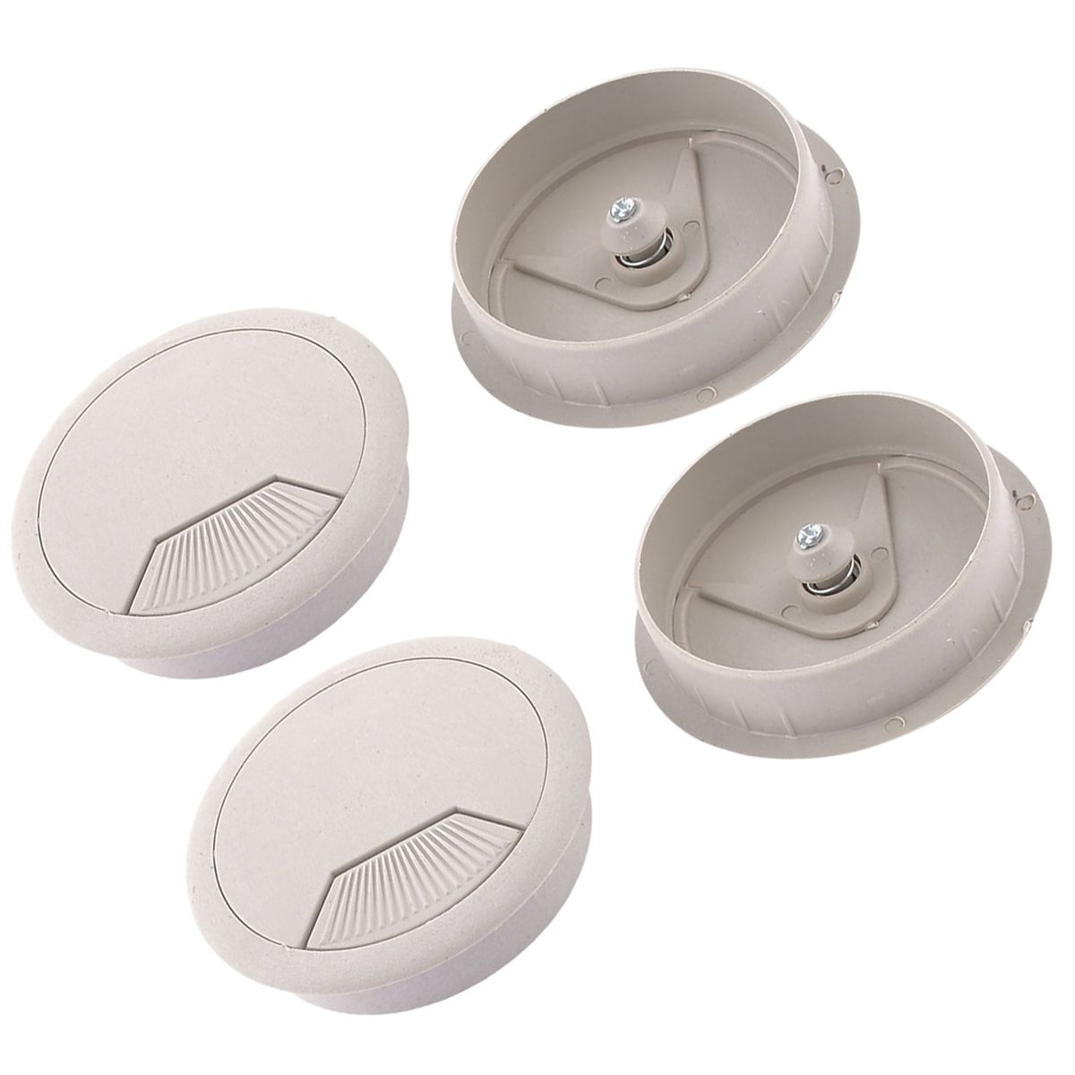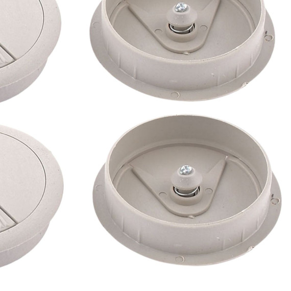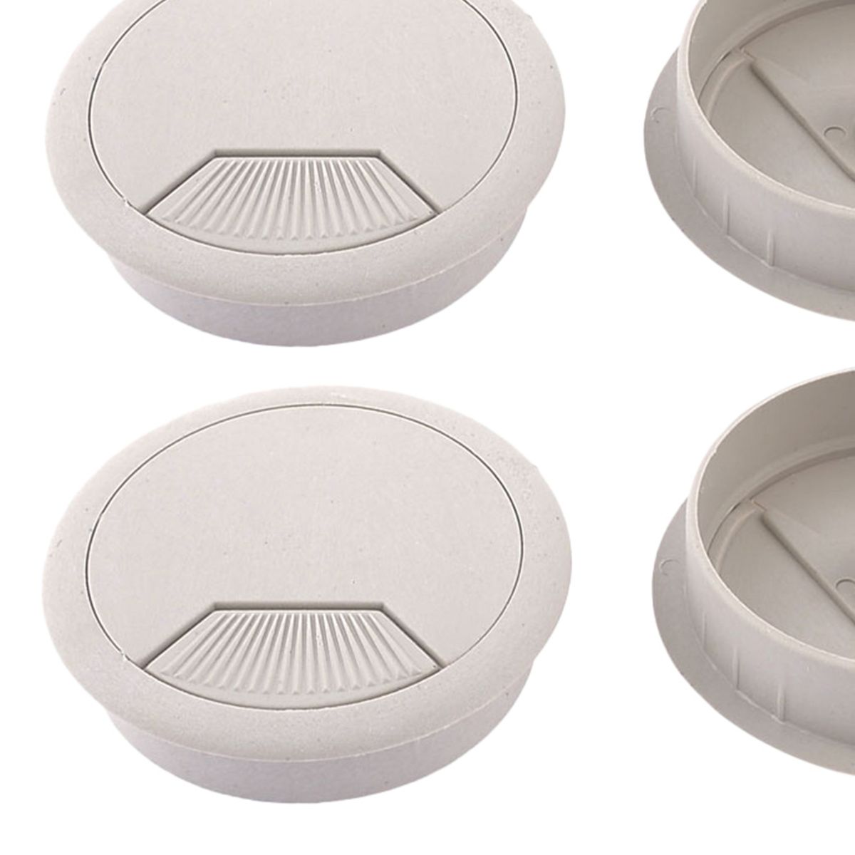 The set includes 4 pieces desk wire grommet, designed for managing wires and cables in your home or office. Made of plastic material with a polished finish, they prevent scratches and scuffs on your cables. The gray grommet cable hole cover allows wires to pass through safely and neatly. Suitable for computer desks, conference tables, and various desktops, providing a tidy environment. The detachable lid offers flexibility in organizing wires. Easy to install by inserting into pre-drilled holes, fitting a 60mm diameter.