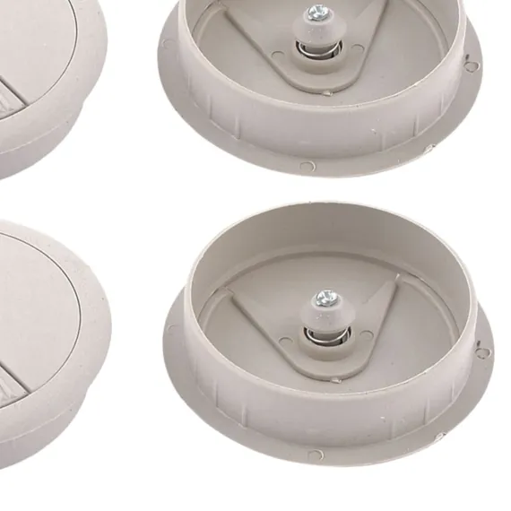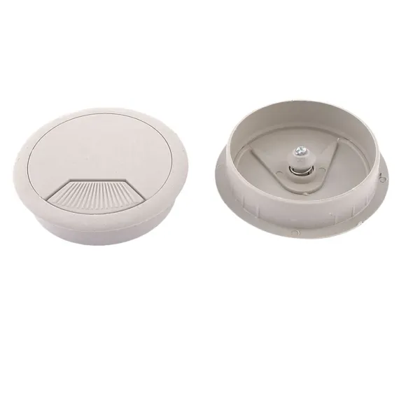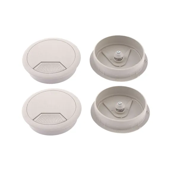 The set includes 4 pieces desk wire grommet, designed for managing wires and cables in your home or office. Made of plastic material with a polished finish, they prevent scratches and scuffs on your cables. The gray grommet cable hole cover allows wires to pass through safely and neatly. Suitable for computer desks, conference tables, and various desktops, providing a tidy environment. The detachable lid offers flexibility in organizing wires. Easy to install by inserting into pre-drilled holes, fitting a 60mm diameter.