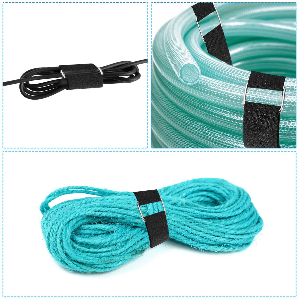 These hook and loop straps offer a secure and adjustable way to organize cables. Made from durable nylon with hook & loop attachments, they ensure a strong hold that won't degrade over time. Ideal for bundling wires, hoses, and even sports equipment, these straps are versatile and reusable. They come with 25 metal buckles, allowing you to customize the length as needed. For optimal bundling, overlap at least 4 centimeters.