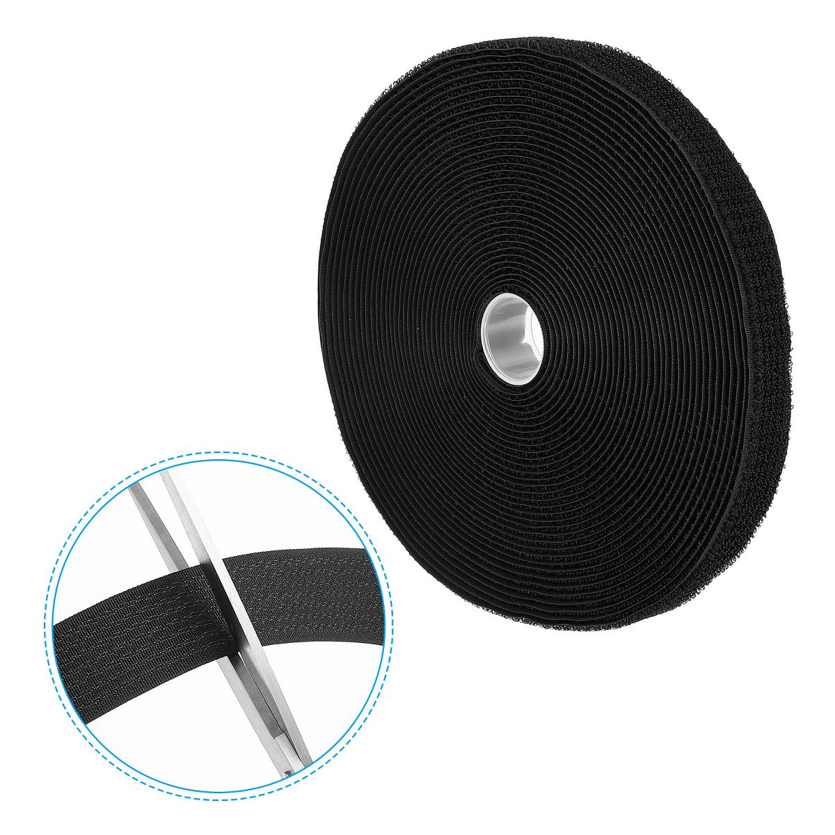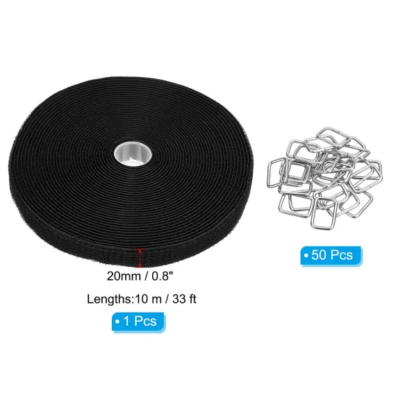 Unique Bargains Nylon Adjustable Durable Reusable Hook and Loop Cable Straps 0.8 in x 33 Ft Black with 50 Pcs Metal Buckles