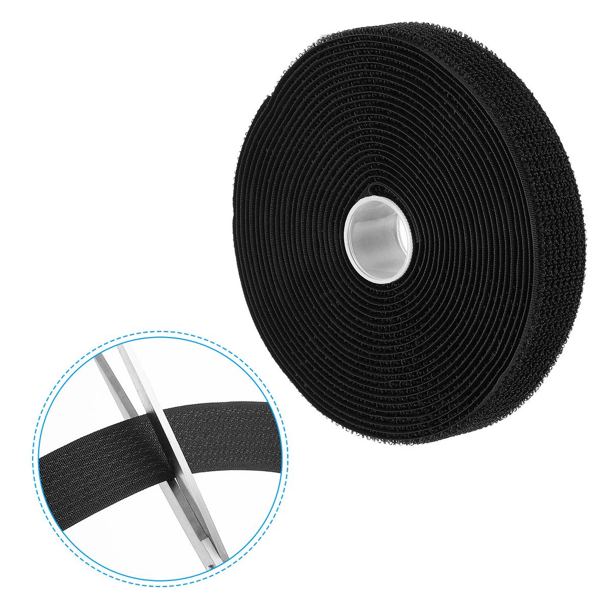 These hook and loop straps provide a secure and adjustable solution for organizing cables. Made from durable nylon fabric, they feature hook & loop attachments that adhere firmly to the nylon surface, ensuring a strong hold that won't come off over time. Ideal for bundling wires, cables, hoses, and other items, these straps are versatile and can also be used as DIY sewing adhesive fasteners. With 25 metal buckles included, you can cut any length from the cable tie roll to suit your needs. Simply pull the end through the metal loop eye, tighten it, and fold it back. For optimal bundling, overlap at least 4 centimeters.