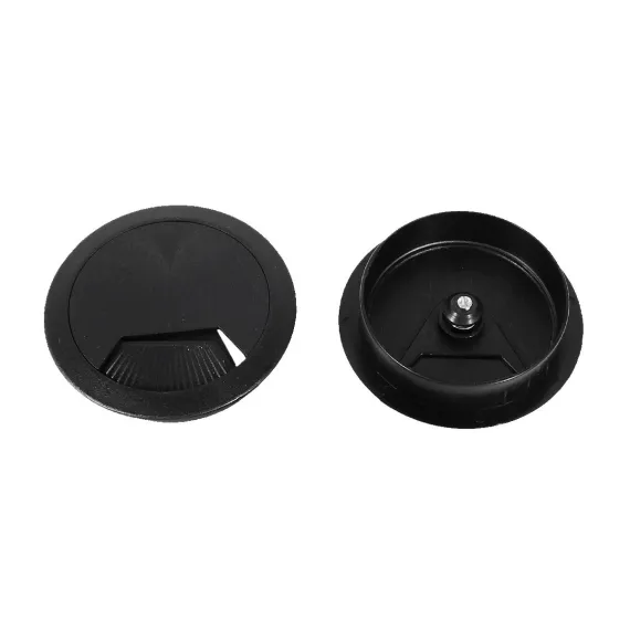 Made of plastic material with a polished finish that never scratches or scuffs your cable. The black grommet cable hole cover allows wires and cables to pass through safely and neatly. Suitable for desk and home office use. It has a diameter of 71 x 60mm and a height of 1.7cm. This product is lightweight at 43g and comes in a package of 3 pieces.