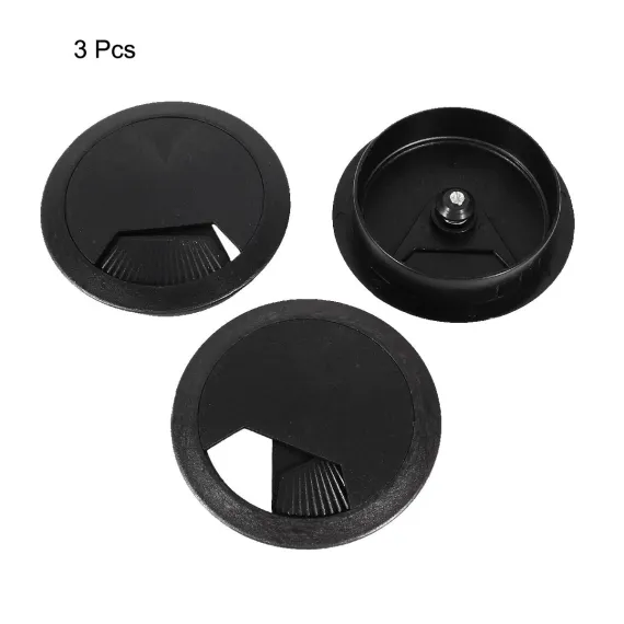Unique Bargains PC Desk Black Plastic 60mm Diameter Grommet Cable Hole Cover 3 Pcs