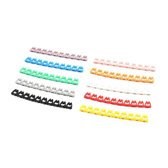 This set includes 10 pieces of coded clip-on wire markers, ideal for identifying and labeling wires, cords, and cables. Each marker features a C-type clip design for easy attachment. Made of plastic, these markers ensure durability and reliability. They provide a comprehensive range for wire numbering with numbers from 0 to 9. The color-coded cable markers are perfect for easy cable identification. Suitable for home, industrial, and commercial settings, these markers fit wire diameters of 4-6mm and are compact and reusable.