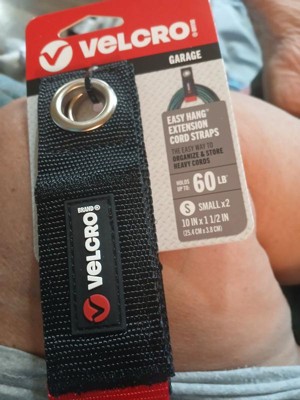VELCRO Brand EASY HANG Extension Cord Straps make it easy to organize even the longest, heaviest extension cord.There are few things more frustrating than untangling a wet, dirty extension cord when you are in a rush? For easy extension cord storage, these hanging substitutes for an extension cord reel are also suitable for RV storage as well camper organization and storage. The rust-resistant grommet slips easily onto a hook and hangs precisely where you need it. With extra-wide webbing and red pull tags, your extension cords zip on and off the straps with ease. Use also as workshop organizers and storage, perfect for extension cord management. So what are you waiting for? Get that garage, shed, basement, tool closet organized. Extension cord holder works perfectly for garage storage or as a power cord reel. Your well-ordered extension cords will be the envy of the neighborhood. Just one more innovation to make your life easier and more organized. VELCRO Brand EASY HANG EXTENSION CORD STRAPS. Make Garage organization and storage simple! Easy-open red pull tags make them easy to use; lighter and simpler than an extension cord reel, easy storage for garage.