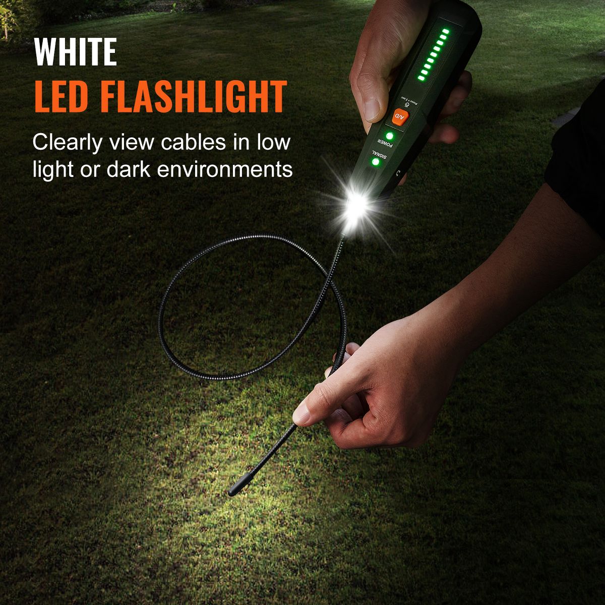 Illuminate Your Way: Our wire break locator is equipped with a powerful flashlight function, providing users with extra convenience in low-light conditions. No longer limited by the environment, you can carry out cable locating anytime, anywhere. Shine a light on your cable-locating journey!