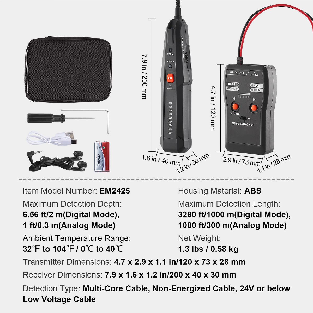 Exceptional Performance: Our underground cable locator boasts an impressive 6.5-foot detection depth and a remarkable 3280-foot detection length. Say goodbye to limitations in depth or distance as you effortlessly locate cable break points. Get the job done with precision and ease!